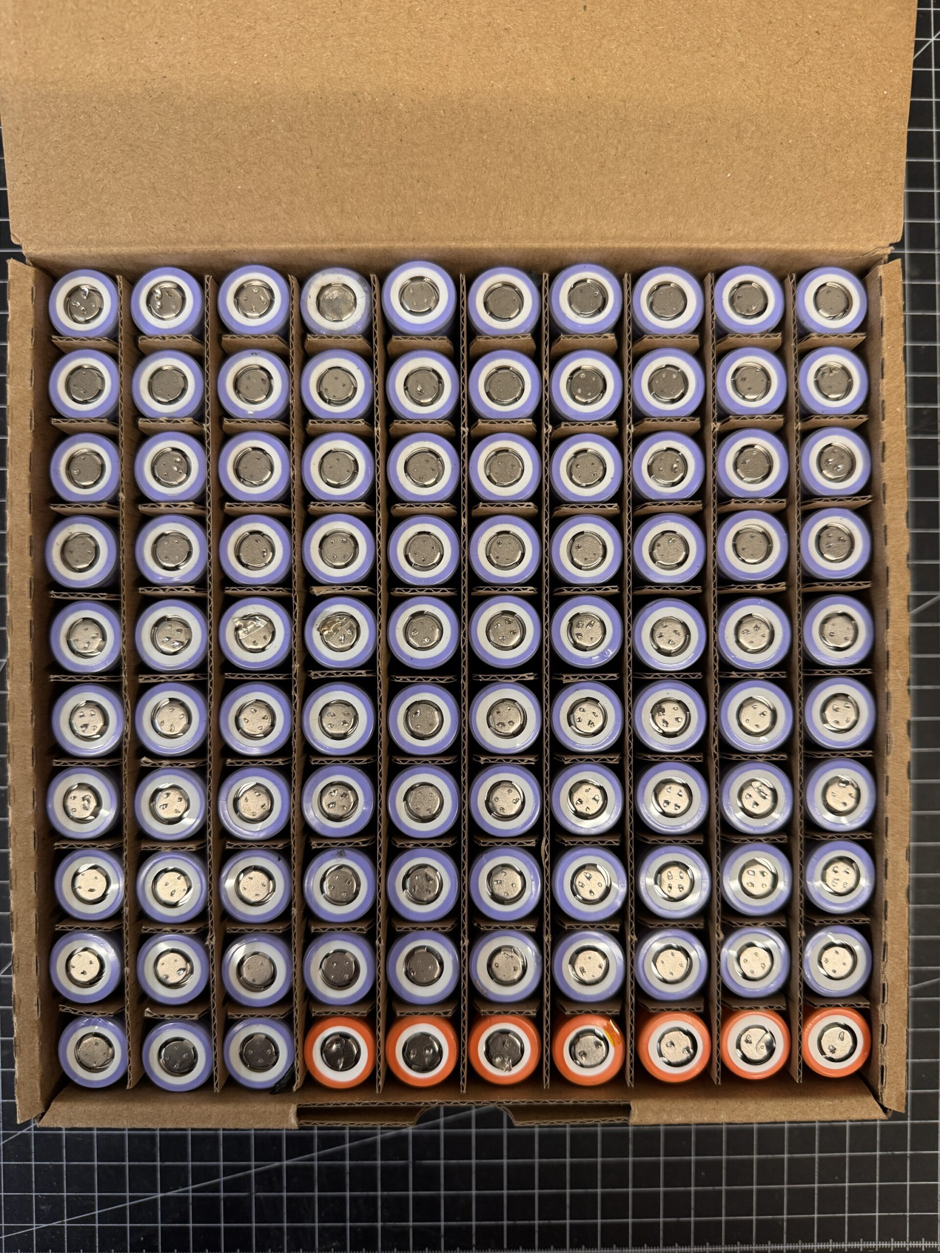 Diese Box enthält 100 gebrauchte 18650-Zellen, die aus Akkupacks mit defektem BMS oder einer fehlerhaften Zellreihe stammen.